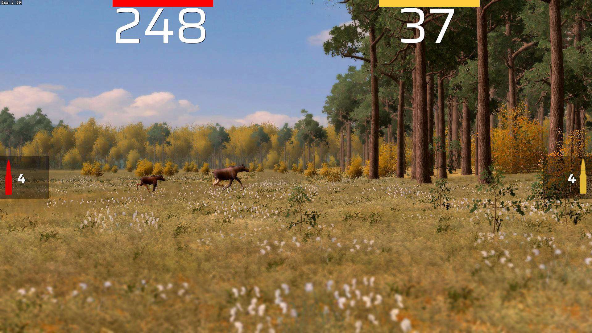 metsästyksestä. Kun samalla näytöllä pelaa kaksi